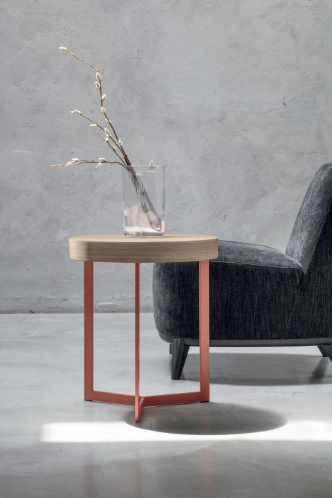 Tavolino Joy Plus piano materico rovere sabbia, struttura metallo rubino 172.