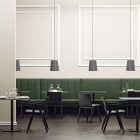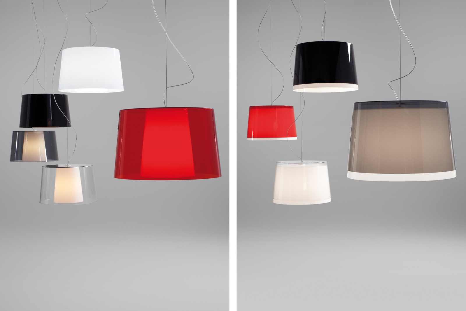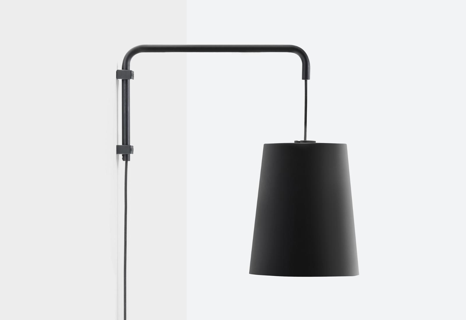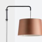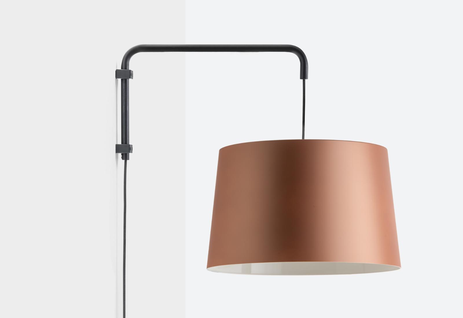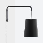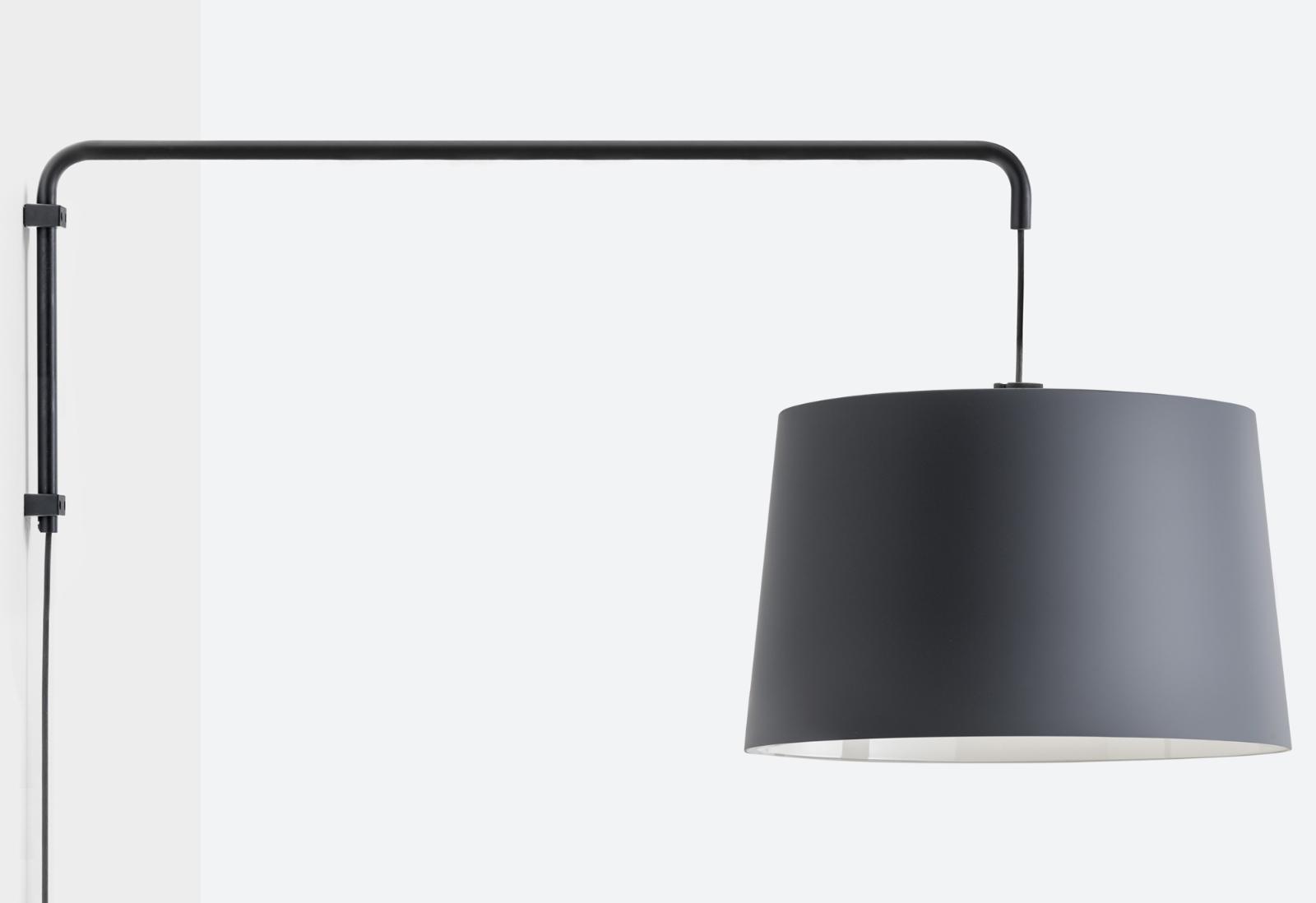 Wall lamp with injection-molded polycarbonate diffuser, exposed cable and metal arm available in various sizes.