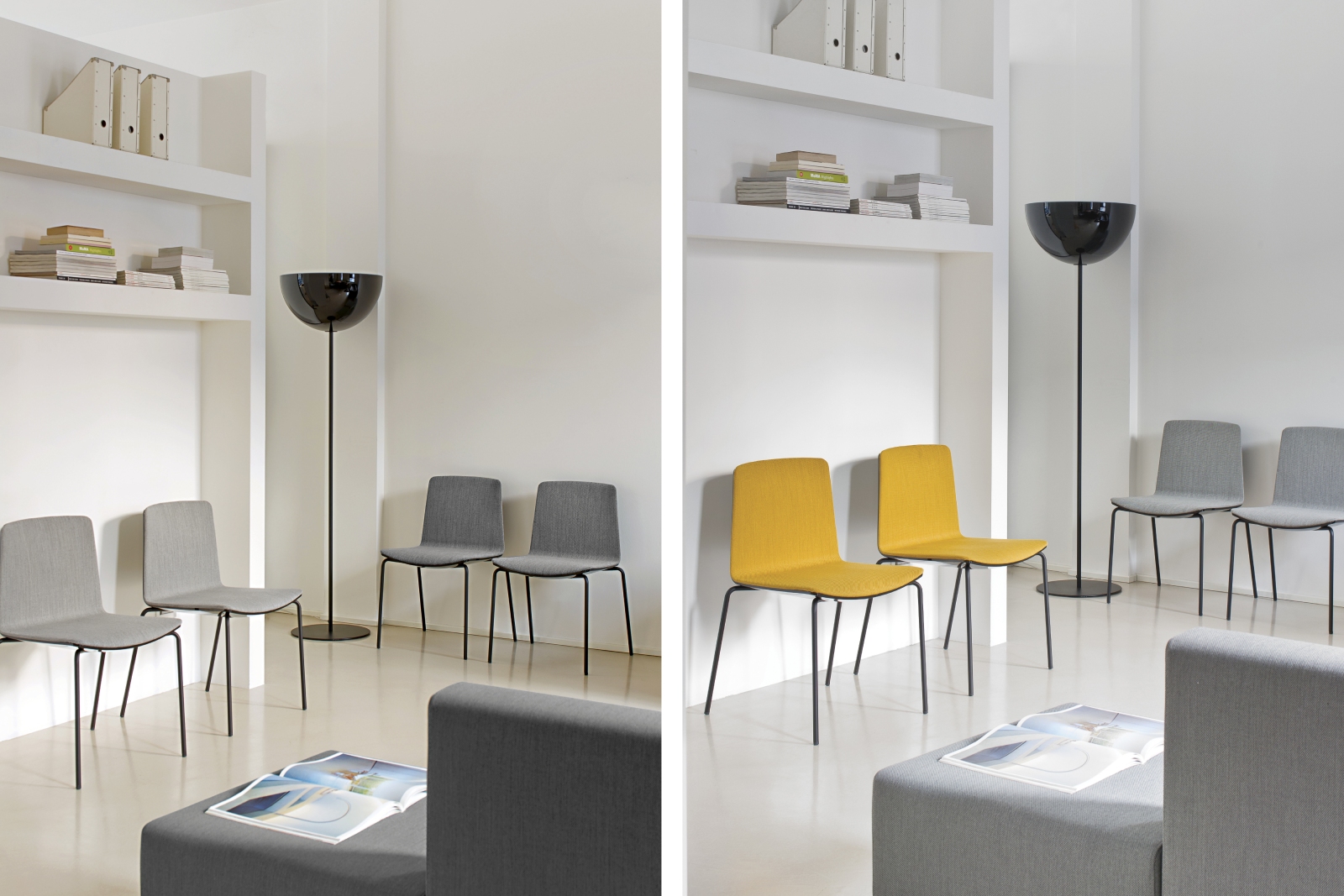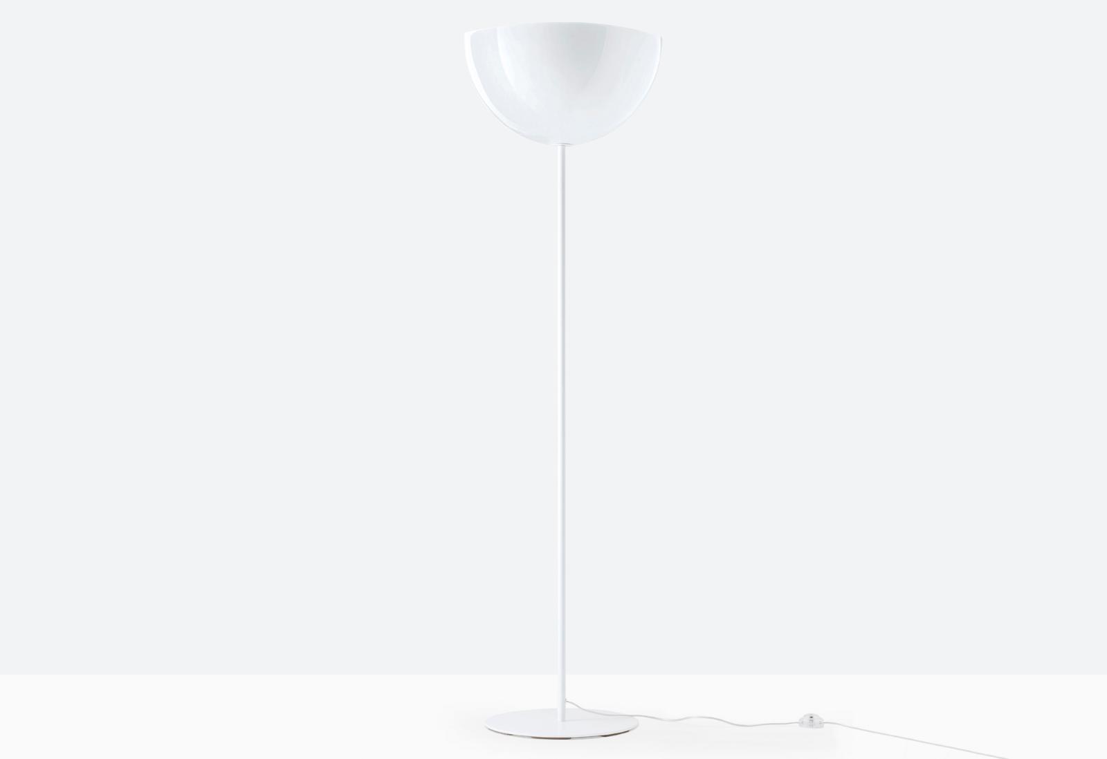 The L002 collection is the result of combining two molded polycarbonate shells and it stands out for its soft and sinuous shapes. Floor lamp with two injection molded polycarbonate diffusers Ø 520mm, steel base and central stem. Foot pedal to switch on.