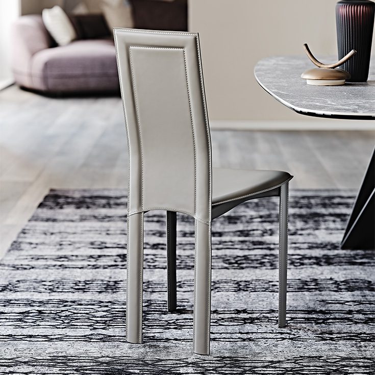 Lara stems from the inspiration of Giorgio Cattelan and is one of the longest-lived products of the company, which still today enjoys great international success. It combines an unmistakable personality with the comfort that distinguishes a designer chair of excellent quality. This leather chair with visible stitching and an unmistakable shape is designed to enhance any room in the house with a strong style impression.