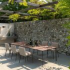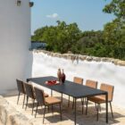 The dining chair of the Leaf collection is characterised by elegant shapes and and slender lines. The soft seat, padded in quick foam, is upholstered in weatherproof fabric. The aluminium structure along with unique fabrics make the product in line with the design of the entire collection.