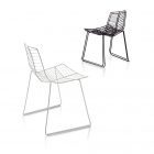 Ideal for outdoor applications, the delicate silhouette of the Leaf collection of chairs and tables is designed for both residential and contract environments, from hospitality spaces to the intimacy of the home. The seats are available as chairs (also stackable), lounge seats, and stools made of painted steel, and can be completed with a polyurethane cushion. The H 50 and 74 cm tables with Compact HPL top, available in different sizes (ovaloid, round and square), are the ideal complement for a light and elegant outdoor area.