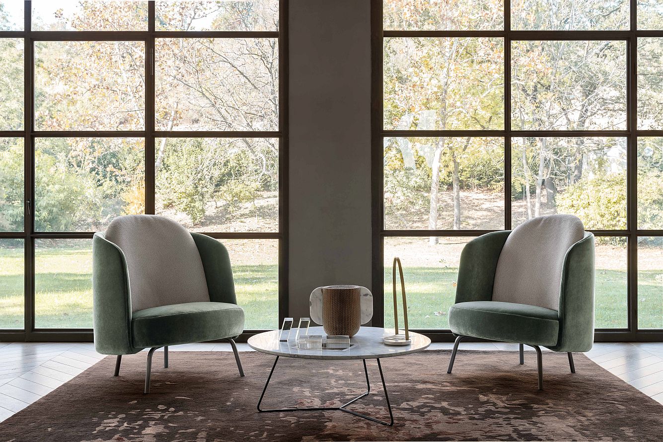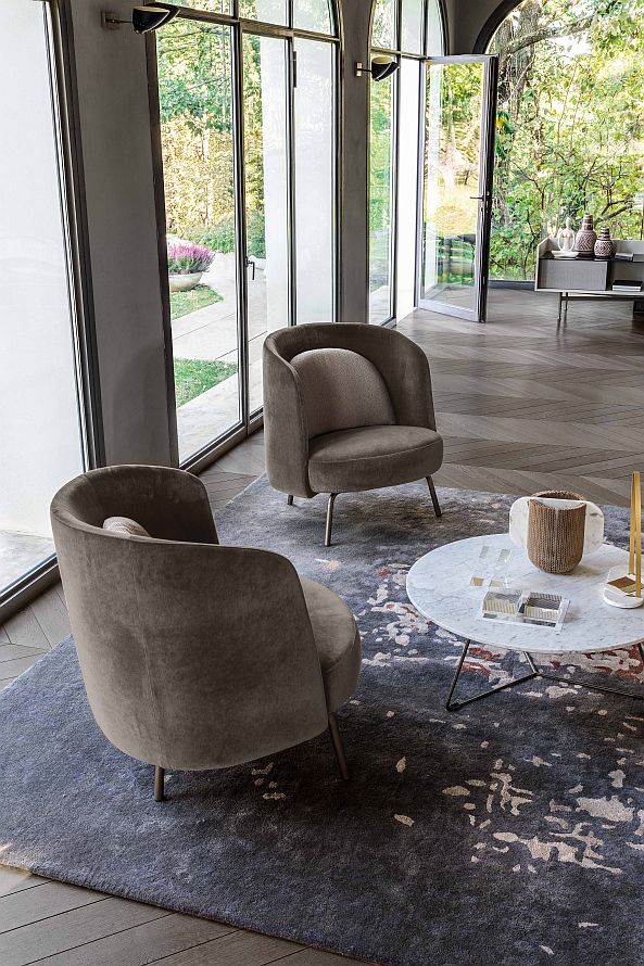 An armchair born to give a graceful touch to the living room, maintaining a sober and timeless appearance