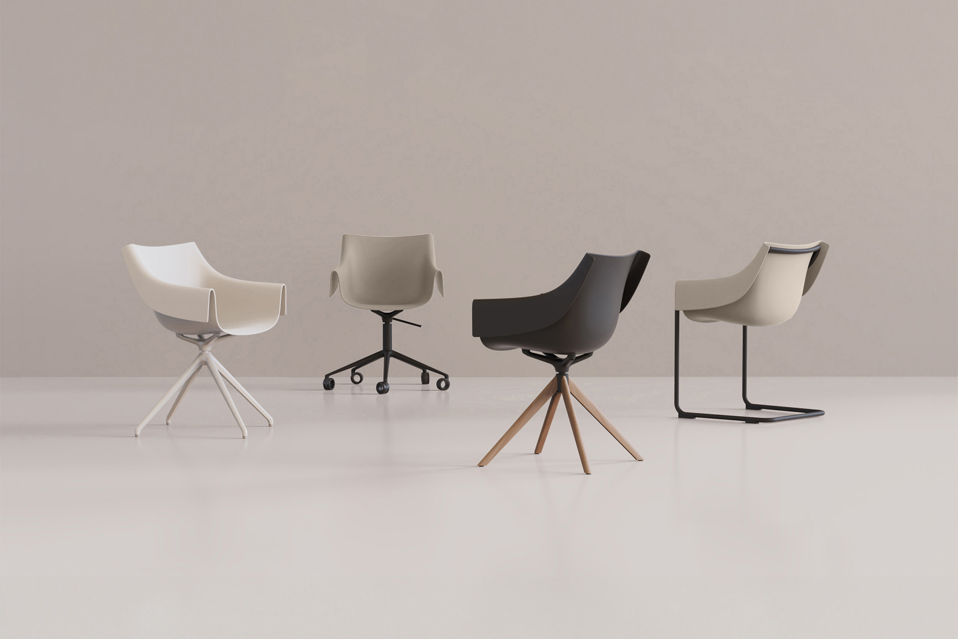 New outdoor and indoor chair collection. The versatile Manta chair adapts perfectly to any space, whether in a home, office, or public setting. This is all possible thanks to an interchangeable design made up of seats and bases to create countless combinations.