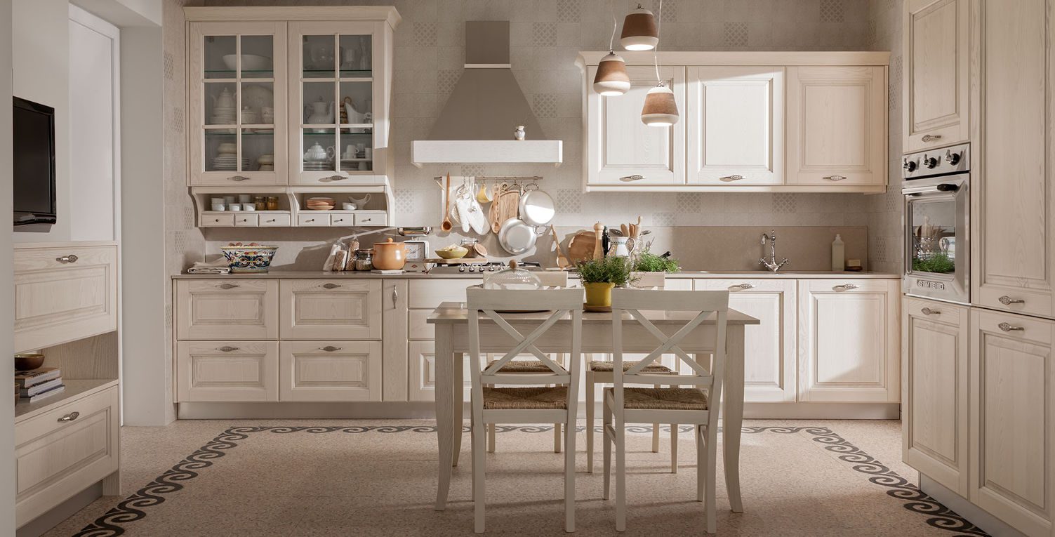 The style of the kitchen is traditional without sacrificing the modernity of its features. The whole is characterized by the frame door with an ash wood panel.