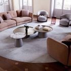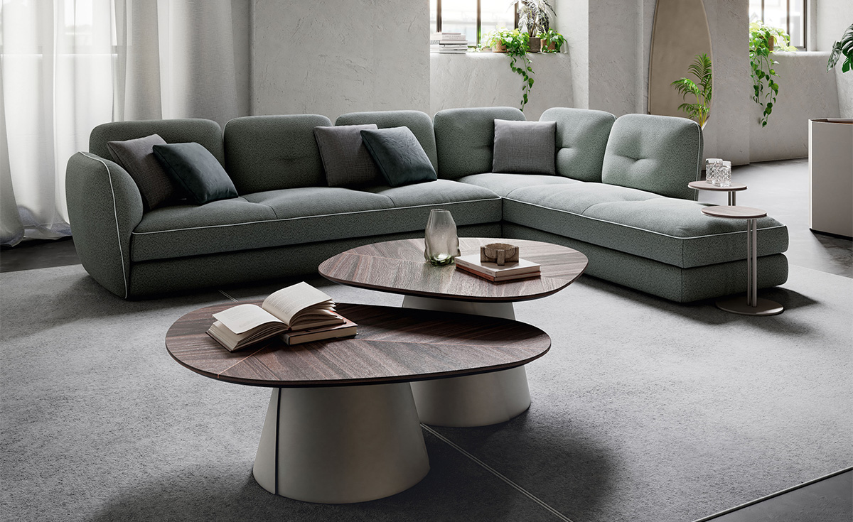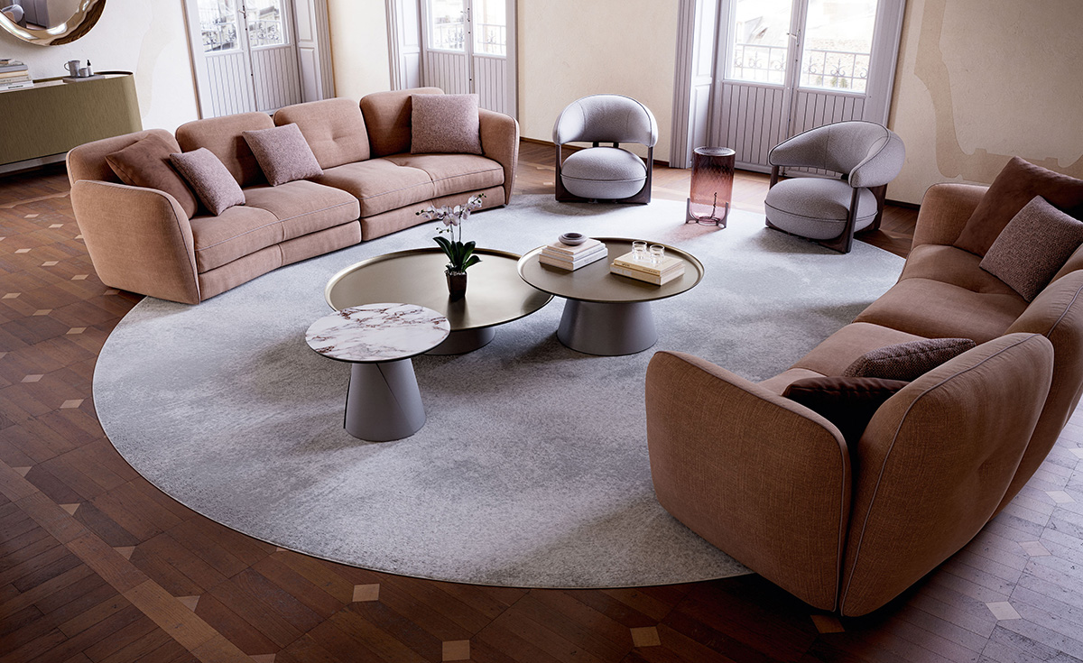Michael is not just a designer sofa; it is a unique experience that brings the warmth of a familiar landscape to your modern living room. Its charm is expressed through the enveloping seat of the semi-circular module —an elegant “amphitheatre” ideal for shared moments and perfect as a centrepiece in any space. With Michael, you can furnish any setting: the gently curved, upholstered cushions reduce depth, making it easy to place in more compact residential spaces and lounge areas. Also suitable for contract settings, this modern sofa showcases exquisite tailoring details, such as the soft stitching on the backrest and the refined grosgrain piping. When your well-being is our priority, a modular sofa’s flexibility is essential. Choose the perfect configuration by pairing practical footrest poufs with open backrests elements, thoughtfully designed to complement our modern coffee tables.