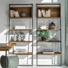 Movida bookcase with anthracite 160 metal frame and textured dark knotted shelves.
