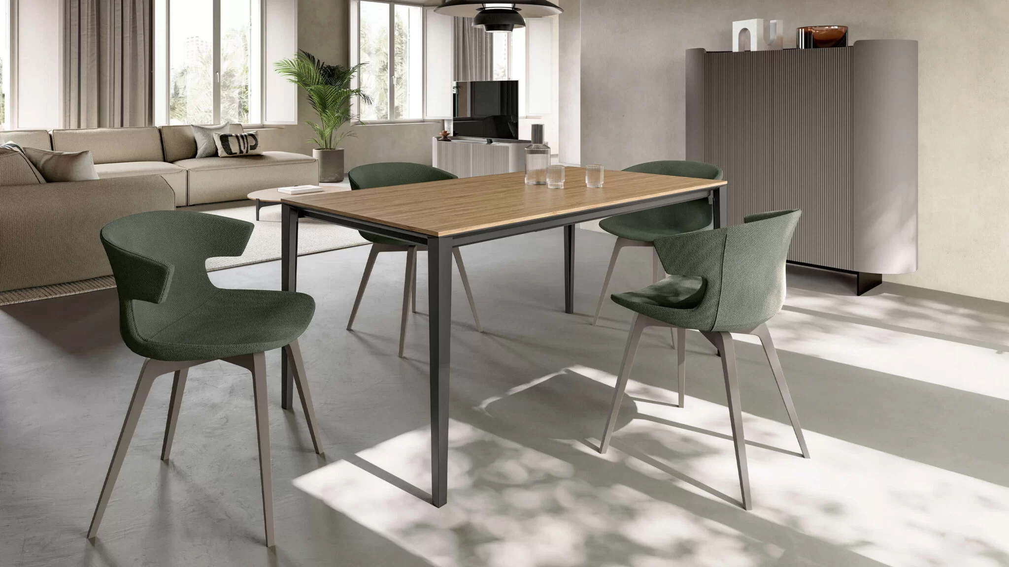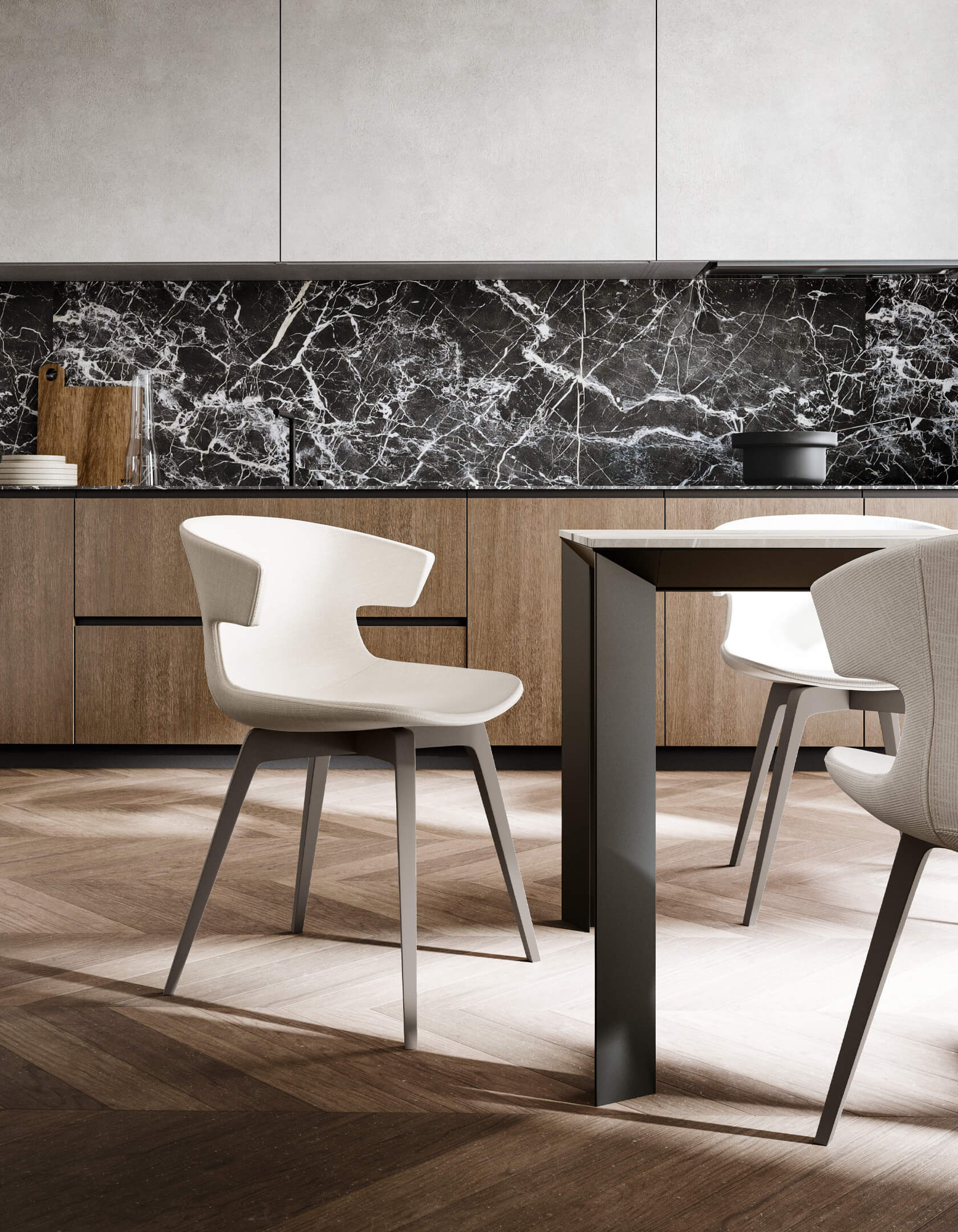 A modern chair with an inviting design, featuring upholstered frame with a choice of different fabrics. A seat with plenty of personality, offering an eye-catching touch to a living space or home study area.