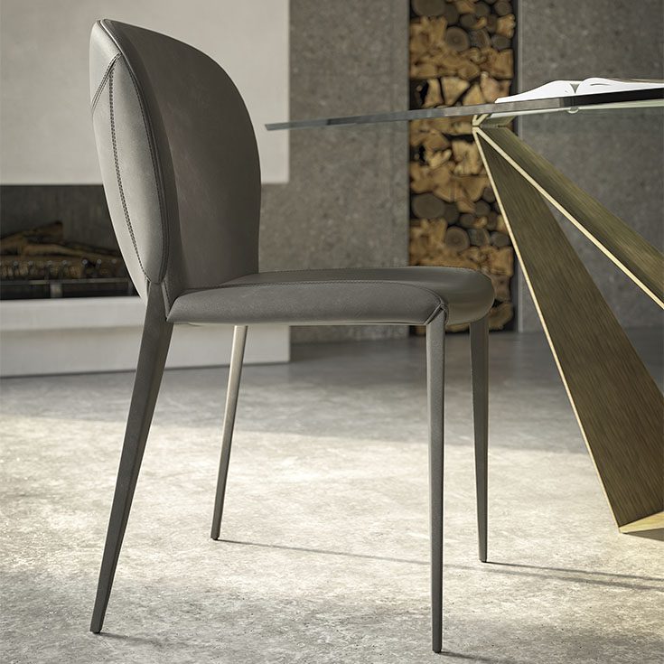 Its sinuous forms are accentuated by stitching to match the upholstery, present both on the seat and on the backrest.The upholstery of this modern designer chair can be chosen from a wide range of refined finishes and high-quality materials.