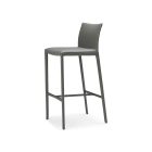 Stool with steel frame covered in synthetic leather, micro nubuck or soft leather as per sample card. Quilted seatback cover. The cover is not removable.