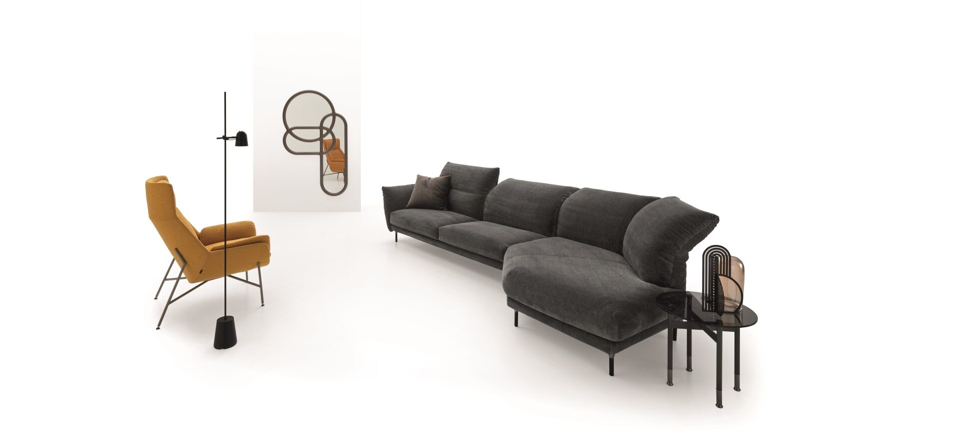 Let’s examine all the expressions of comfort and then stop at the place where On Line is waiting to welcome us. A system of vertical and horizontal lines harmonises the fixed