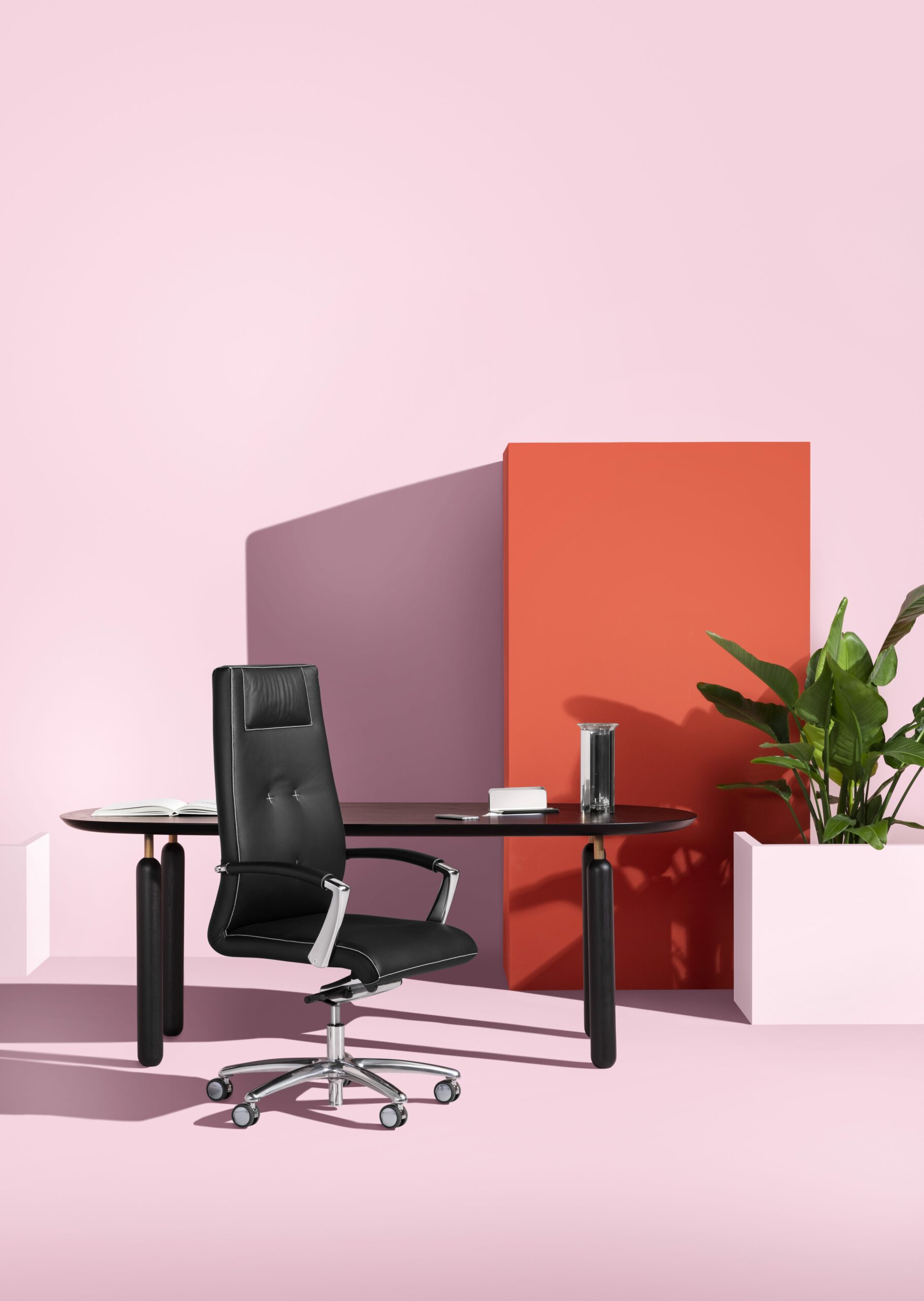A refined and unique design in an homage to traditional manufacturing, One brings leather back into the workplace. Available in two versions— executive and guest—the chair features sartorial detailing and visible seams to highlight its aesthetic and functional beauty. The chair’s padding adds a majestic air while allowing those who use it to take a break during a dynamic workday.