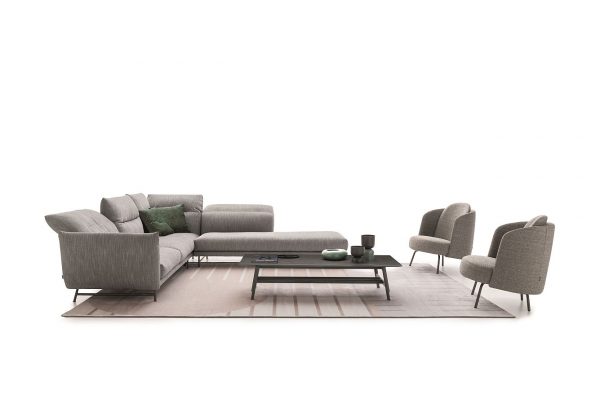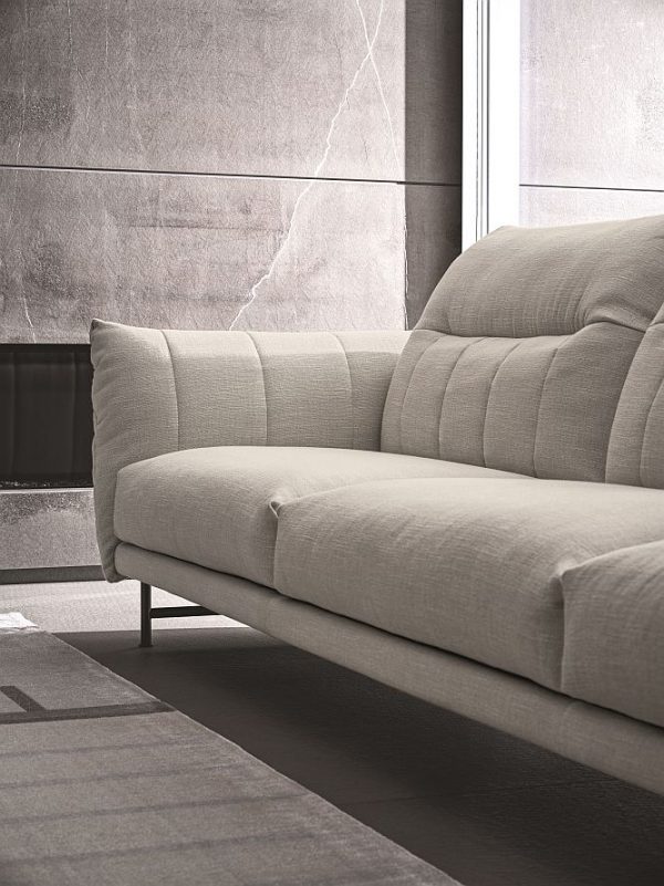 Let’s go through all the expressions of comfort and stop here, where OnLine welcomes us. A system of vertical and horizontal lines harmonizes the fixed part of the seat with the mobile part of the cushions. Backrest and armrests can be adjusted for maximum customization of comfort.