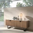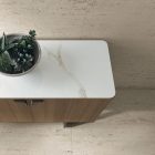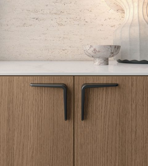 Textured cognac oak carcass, calacatta oro 040 premium stoneware top.