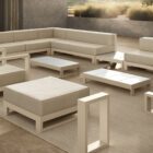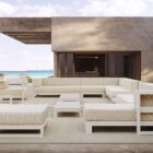 The Posidonia sofa, designed by Ramón Esteve, stands out for its thermo-lacquered aluminium structure, prepared to withstand any climatic condition. The upholstery, composed of latest-generation foams,