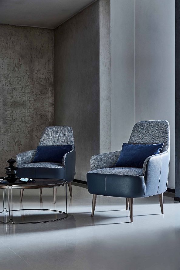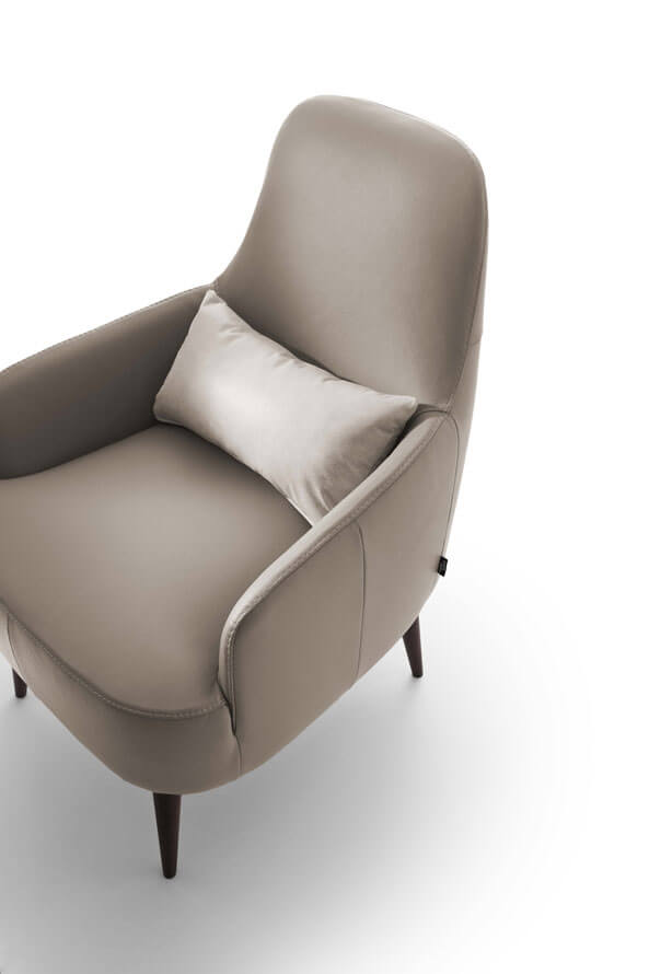 An armchair with enveloping and comfortable lines in perfect balance between vintage flavor and modern design