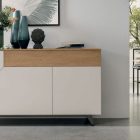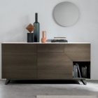 Photo finishes / Remix X02 sideboard with textured matt mother of pearl carcass, textured light knotted insert and anthracite 160 metal base.