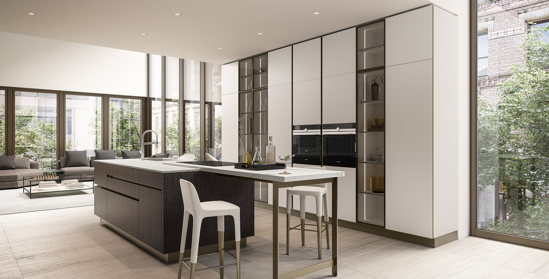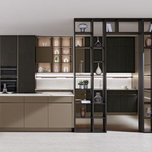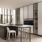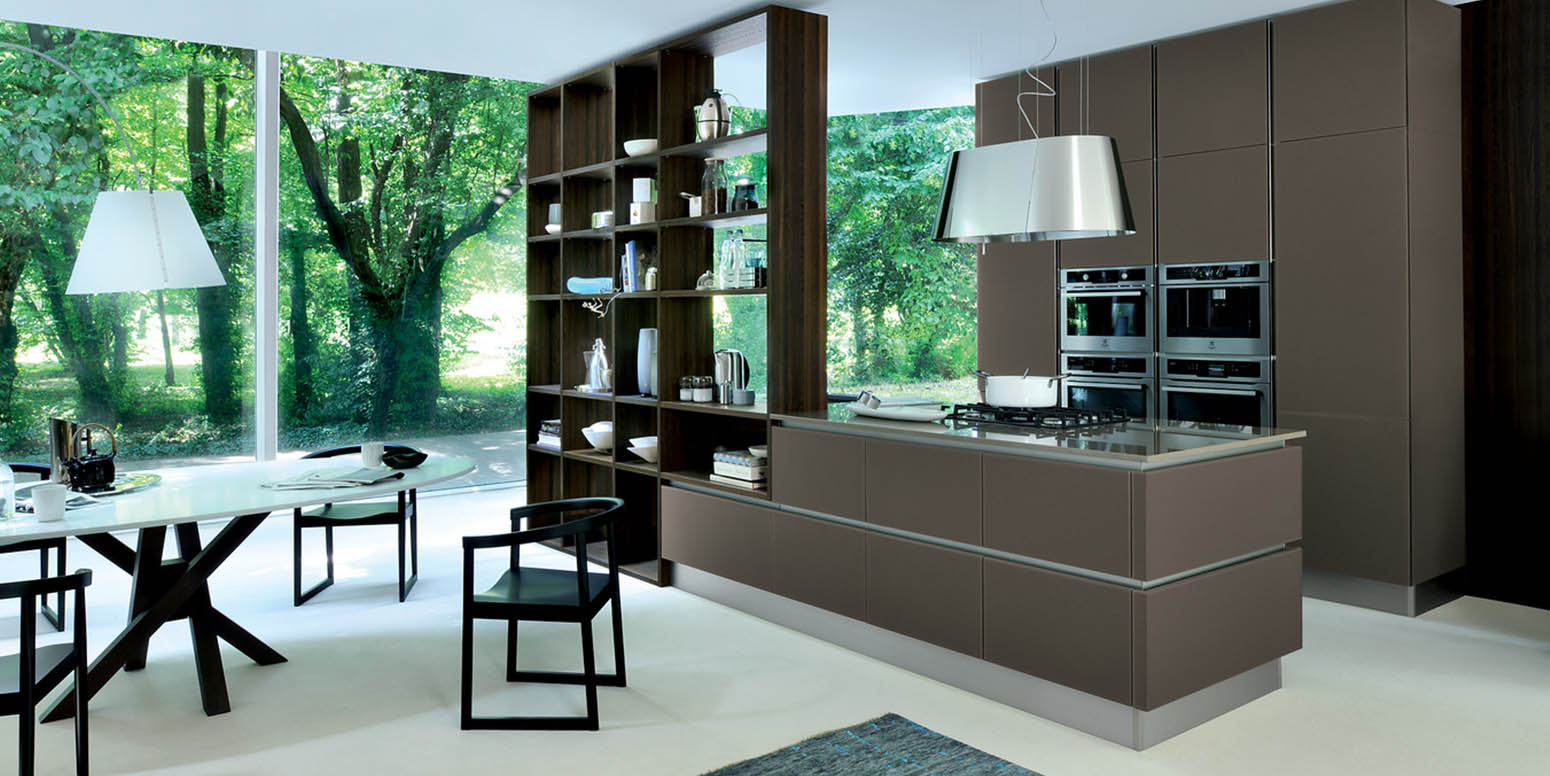 The expressive power of glass falling into different chromatic solutions characterizes this kitchen that meets the most sophisticated aesthetic and functional needs.