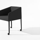 Characterized by an elegant and minimalist design, the transversality of the Saari collection combines with an almost unlimited range of applications, both in residential and contract settings: waiting rooms, lounges, common areas, and office environments. Comfortable and enveloping, the Saari armchair is available with a body in two different versions, which can be combined with different types of frames: four steel or wooden legs (with optional casters), a trestle on feet, and on casters. Designed for lounges and waiting rooms, the armchairs in three different sizes, the two- and three-seater sofa and the ottoman represent the ideal solution for customers looking for comfort and relaxation. All the seats in the collection can be configured with fabric, leather or coated fabric upholstery.”