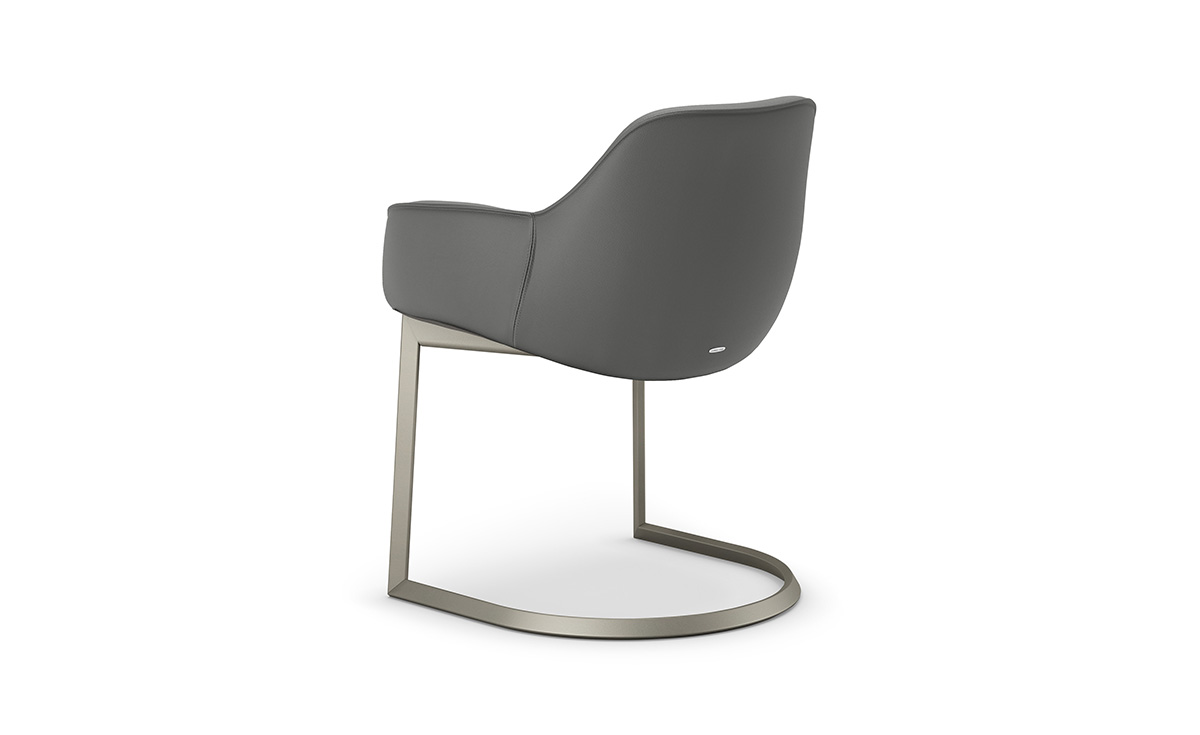 Chair with cantilever frame in titanium (GFM11), bronze (GFM18), graphite (GFM69) or black (GFM73) embossed lacquered steel. Cover in fabric, micro nubuck, soft leather or synthetic leather as per sample card. The cover is not removable.