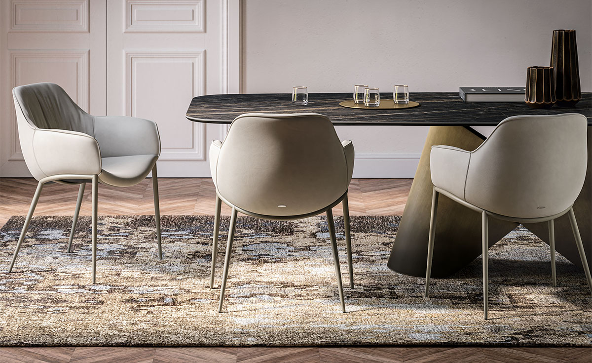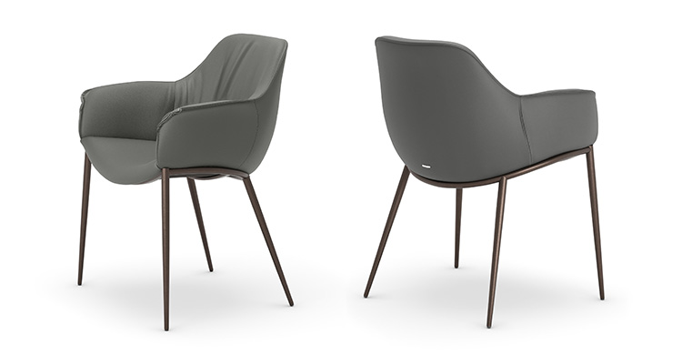 On the lower part of the backrest on each model, the deep frame and leg joints further accentuate the gentle curves of these elegant modern chairs. The Scarlett family provides the perfect combination of both elegance and practicality, and expressiveness and discretion.
