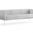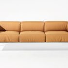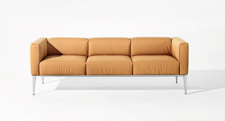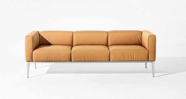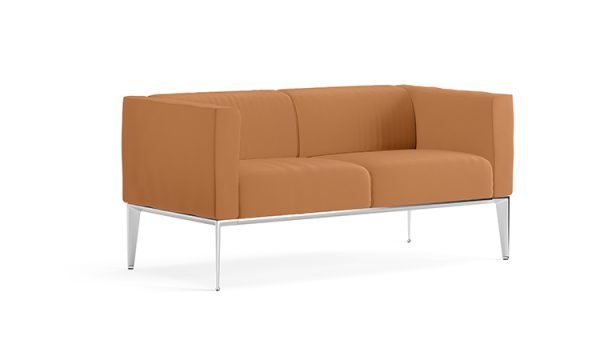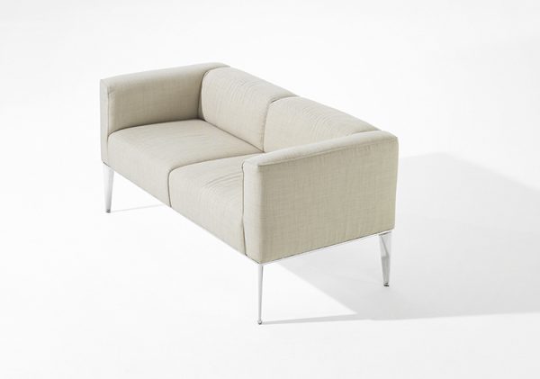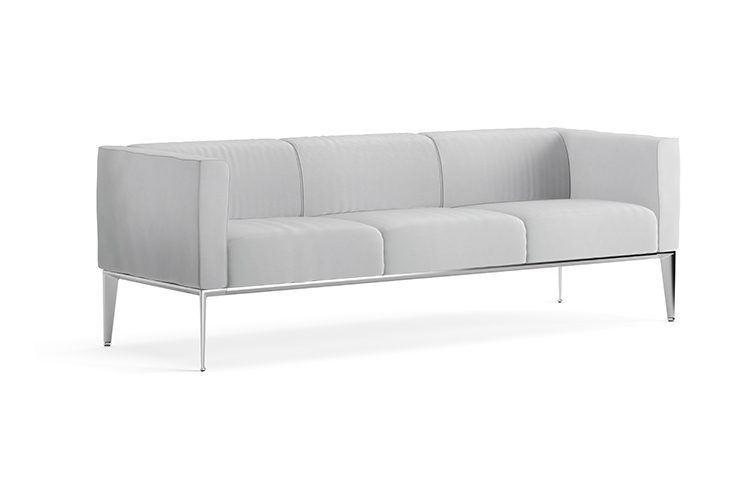 Two or three-seat sofa with MDF frame and aluminum legs, upholstered in leather, faux leather, fabric, or customer’s fabric.