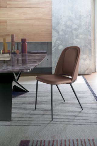 CHAIR ANTHRACITE 160 METAL FRAME. SEAT UPHOLSTERED IN CAT. F POLO 824 LEATHER