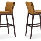 In a continuous dialogue between the recent past and the near future, Sofia, designed by Paolo Cattelan, excels in the category of elegant upholstered stools with a timeless design. Ergonomics and comfort are additional features of the covered cushions which, combined with the discreet aesthetics of the wooden base, make this modern design stool the perfect solution for both the living room and contract interior design projects. The watchword is comfort, the light cushion seems to gently veil the seat and envelope the backrest. The large Sofia family also includes chairs with elegant armrests available with backrests in two different heights.
