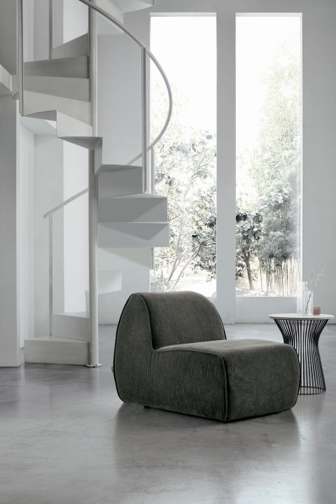 An armchair with an essential design and generous upholstery that combines comfort, practicality and style. The top-stitched seams follow the soft lines and give the chair a young, fashionable look.