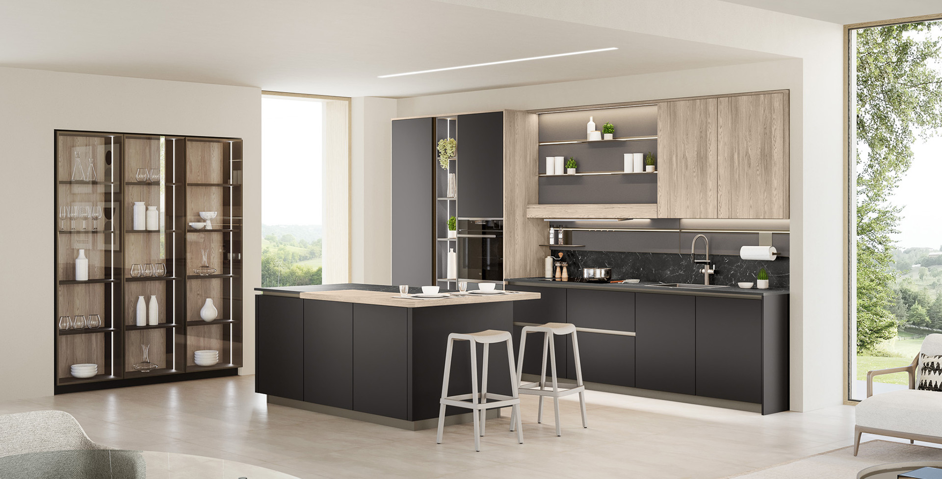 A newly-designed handle for the popular Start-Time model. The new aluminium profile inserted into the door is in addition to the highly-practical recessed system of aperture on Start-Time.Go, which uses a recessed handgrip, to the j profile, and to the more traditional handles.