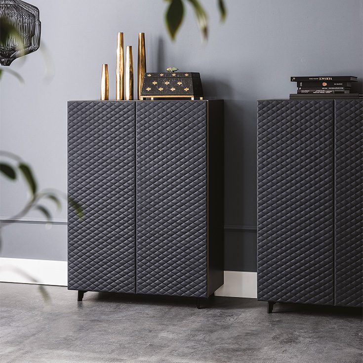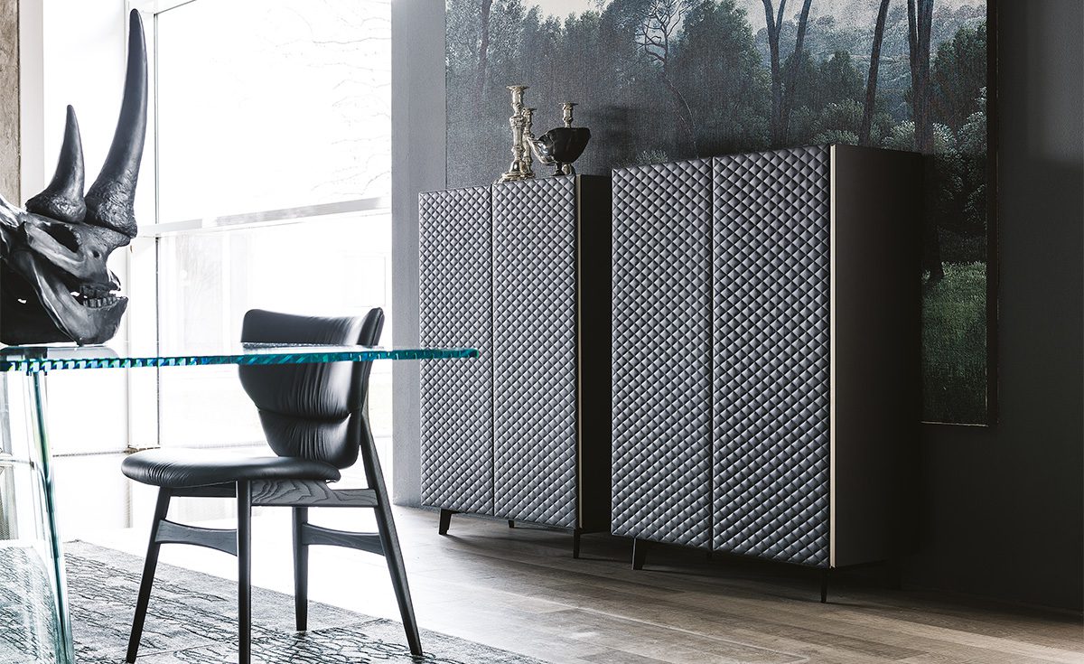 With its soft leather or quilted eco-leather upholstery, the design sideboard Tiffany makes the living environment pleasant and welcoming. This modern high sideboard is made with the finest materials, starting with the soft front covering. Choosing from different coverings and fine finishes, it is possible to customise this designer sideboard and adapt it to the style of your dining room or living area.