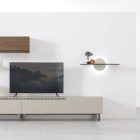 Photo finishes / Amber walnut CDF, mother of pearl CDF. Anthracite 160 metal base. Veined black CDF. Wall panelling reeded amber walnut CDF and anthracite 160 metal shelf. Mother of pearl CDF back-lit Moon shelf. Ink bookcases.