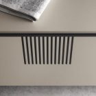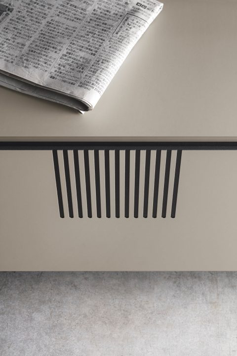 Time leaves its mark in time with its sharp, precise and regular lines that are deeply engraved in the surface and suspended above it. The pursuit of the essence becomes a horizontal or vertical, continuous or interrupted, unique embellishment in all its versions and on every single piece of furniture.
