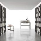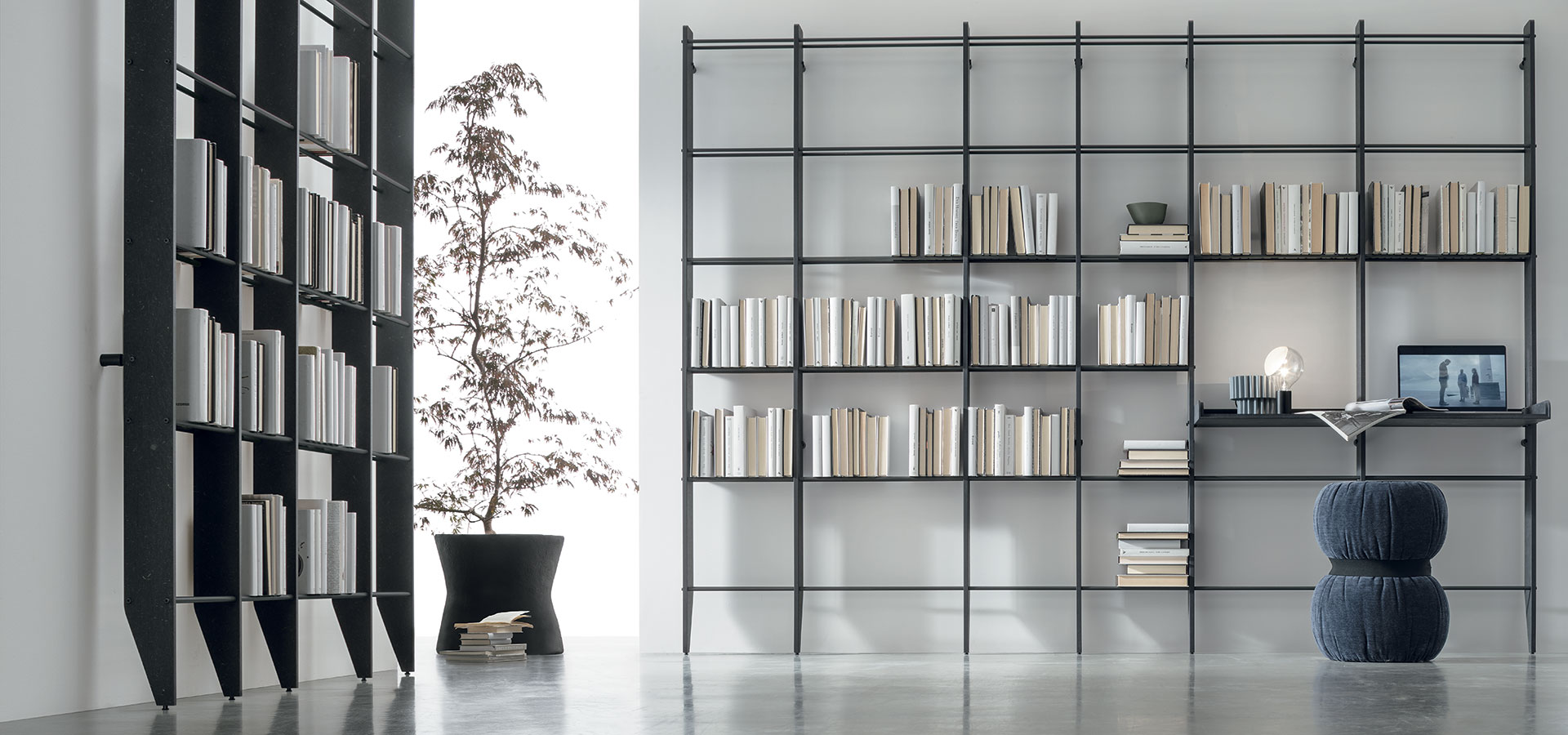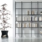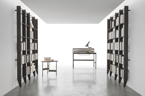 Photo finishes / Raise bookcases with a veined black CDF structure. Anthracite-colored 160 metal rails.