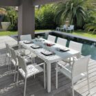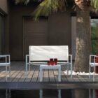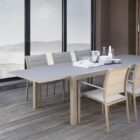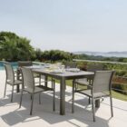 The dining armchair, comfortable for its textilene seat but robust for the aluminium structure, is perfect to complete the outdoor dining area. Its weather resistance and stackability make the products comfortable and functional.