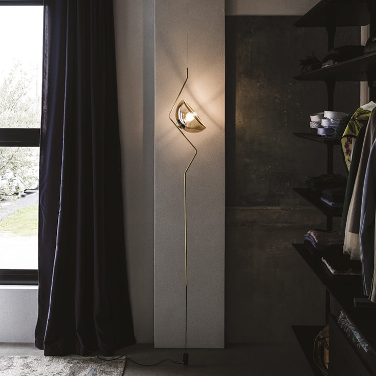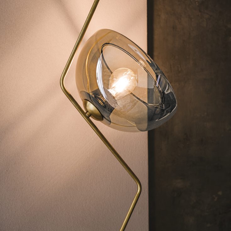 The floor suspension lamp Tramonto has the charm of a minimalist, subtle accessory. A simple but captivating brass stem supports a half-sphere lampshade with a retro touch. The smoked crystal allows the light to be diffused softly. This modern floor lamp is designed to create a refined atmosphere in a modern design living room or in the most intimate rooms of the house.