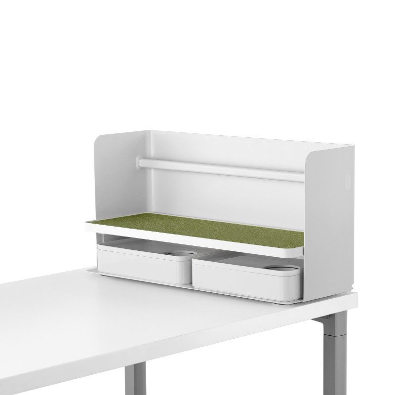 The Small Organiser and Large Organiser activate the zone to the left or right of the individual, orientate documents vertically with the help of the Bookend, and provide boundaries.