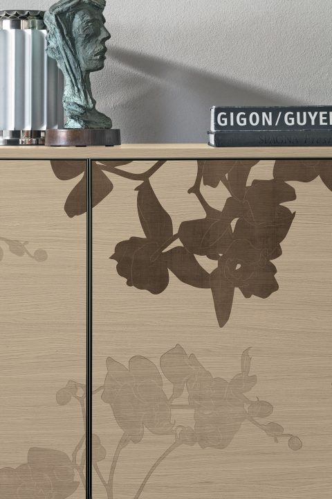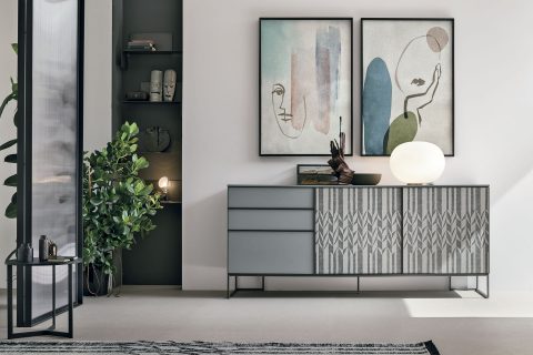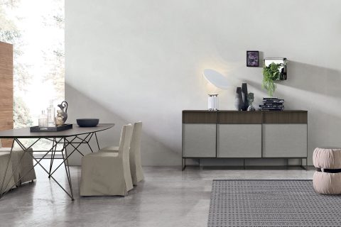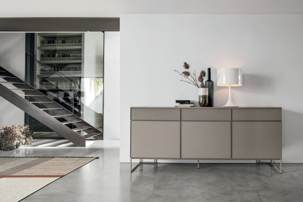 Photo finishes / Vinci sideboard with reeded matt arena 178 lacquered drawer. Carcass and doors in matt arena 178 lacquer. Arena 178 metal trim and base.