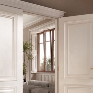 When door and frame merge into a single surface, there is a feeling of harmony in the room. The reliefs disappear almost completely with no contours or protrusions. The built-in hinges enable this magic and also provide a quiet and smooth closing action.