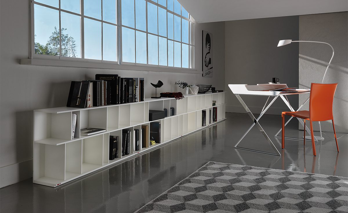 Since 2006 the iconic modular wall bookcase Wally furnishes rooms with an essential and unique taste that best expresses Cattelan Italia’s style. Its authenticity can be noticed in the laquered wood, which is finely finished with high quality manufacturing techniques. The original combinations and possibilities granted by this modern modular bookcases perfectly adapt to the walls of any room. Moreover, the different sizes of the wooden compartments highlight the shapes of the books and objects, displayed like symbols of one’s passions and interests. The wide range of finishes is crefted from the best quality materials, making Wally a precious and sophisticated modern wood bookcase.